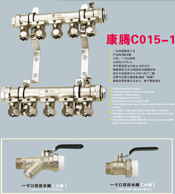 【產品型號】康騰C015-1款鍛壓一體小體銅分水器